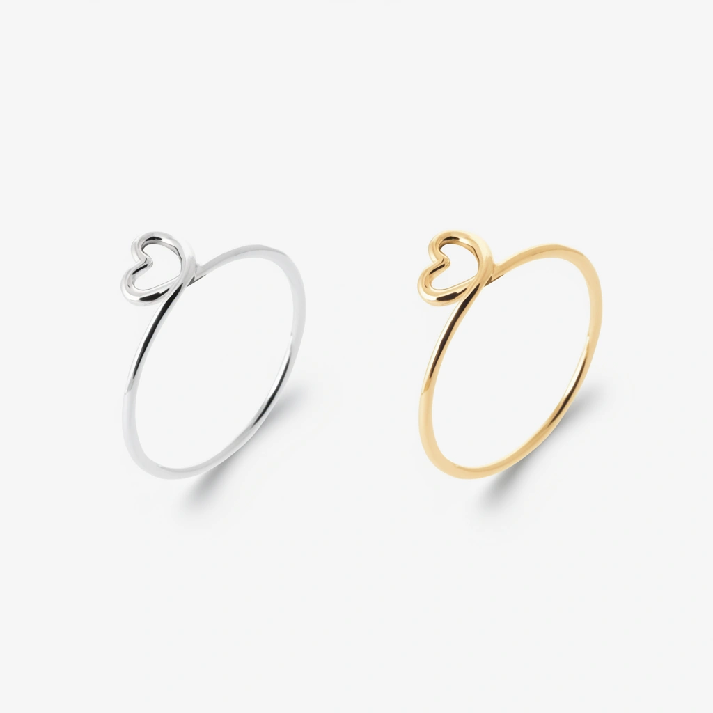 Bague fine ornée d’un petit motif cœur formé en fil, apportant une touche délicate et symbolique. Son design léger et épuré se prête à un port quotidien. Collection Saint-Valentin.