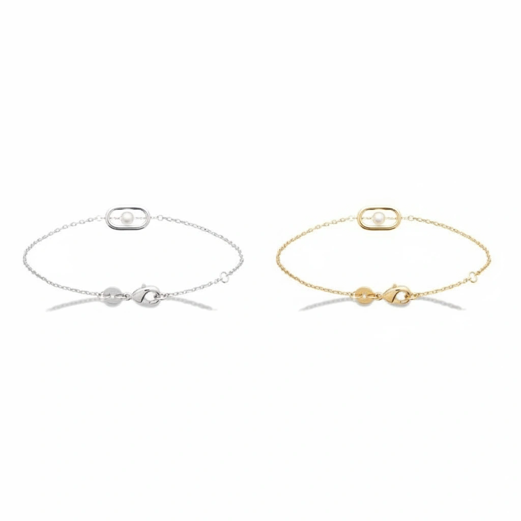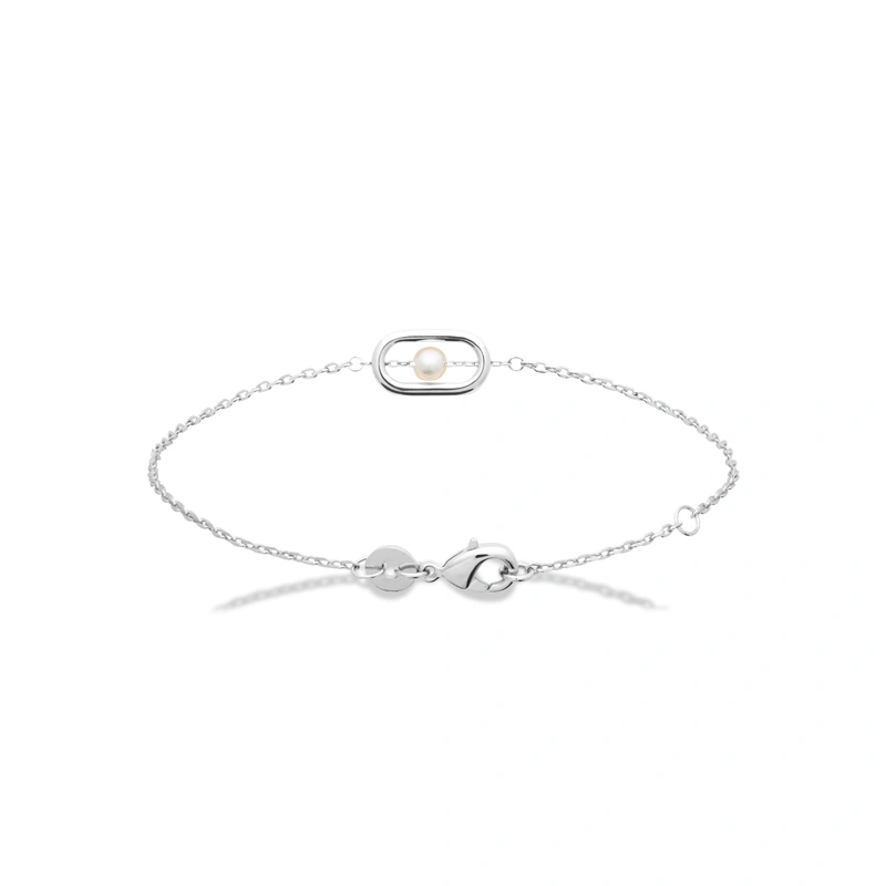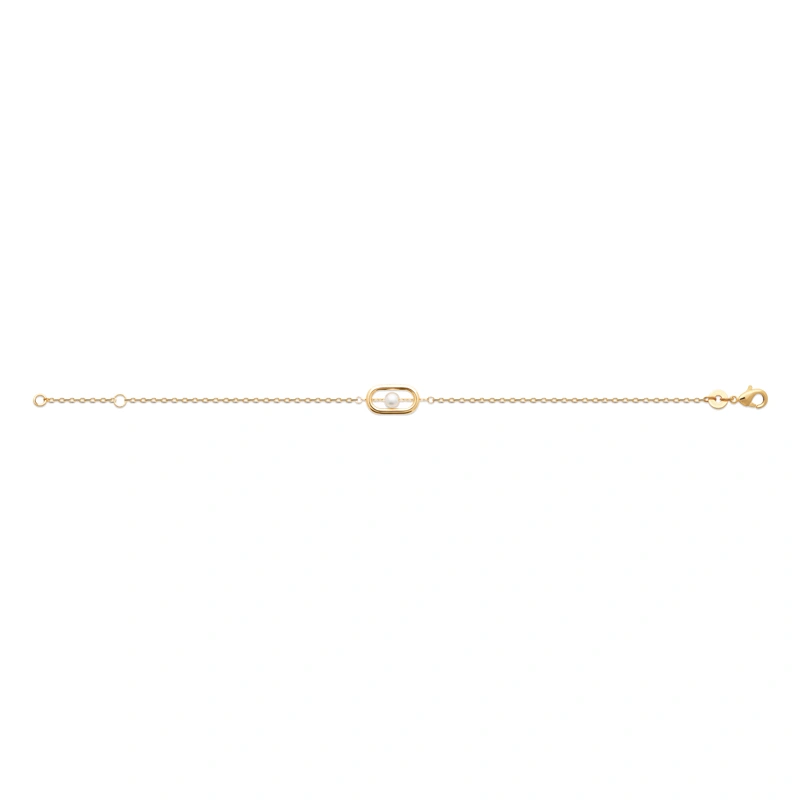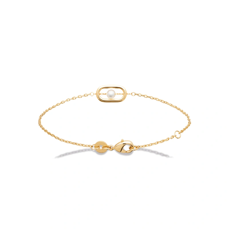 Bijou délicat orné d’une perle de culture mobile, libre de se déplacer à l’intérieur de son motif rectangulaire. Son design fin et épuré apporte une touche d’élégance subtile