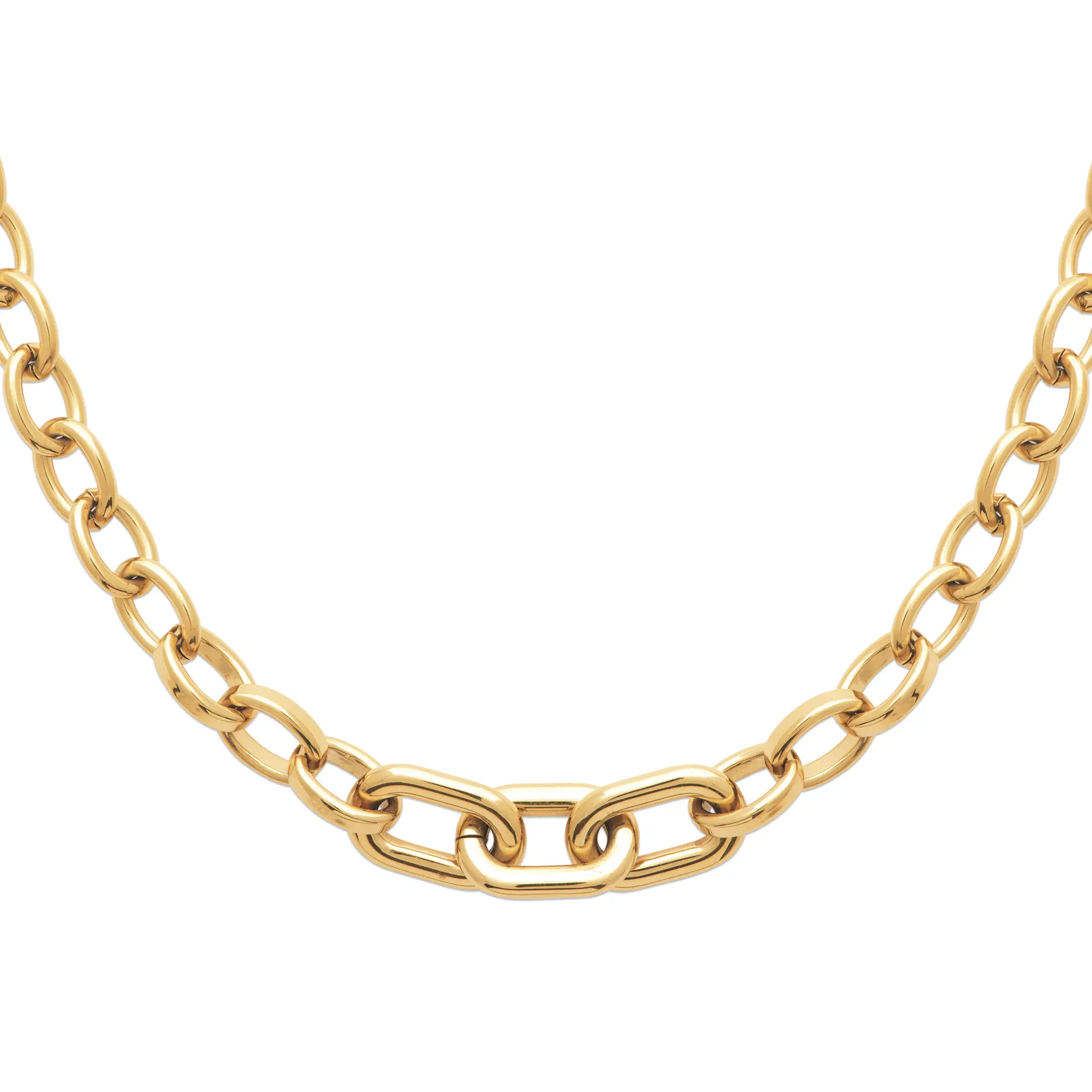 Décliné en bracelet et collier, ce bijou se distingue par sa chaîne graphique aux maillons contrastés. Un design moderne et affirmé pour apporter une touche chic et contemporaine à toutes les silhouettes. Collection Temporelle.
